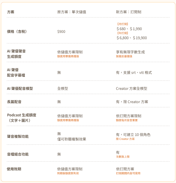 VoAI 聲音創造所|訂閱制價格方案